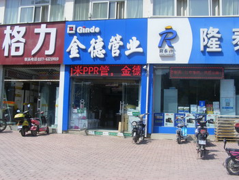 南阳市卧龙区工业路五交化商店作为国内著名企业——金德管业集团南阳总代理,为开拓南阳管业建材市场,在金德集团的领导下,做出了不懈努力,取得了优异的销售业绩,连续多年被评为“星级经销商”、“诚信无假货单位”、“白金星级客户”等荣誉,在南阳管材行业享有很高的声誉,为南阳人们用上好管材作出了积极贡献。